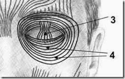 - ثنية الجفن العلوى (Upper eyelid crea) : ثنية الجلد فوق العين نتيجة فتح العين بواسط الجفن العلوى تختفى عند أغماض العين .